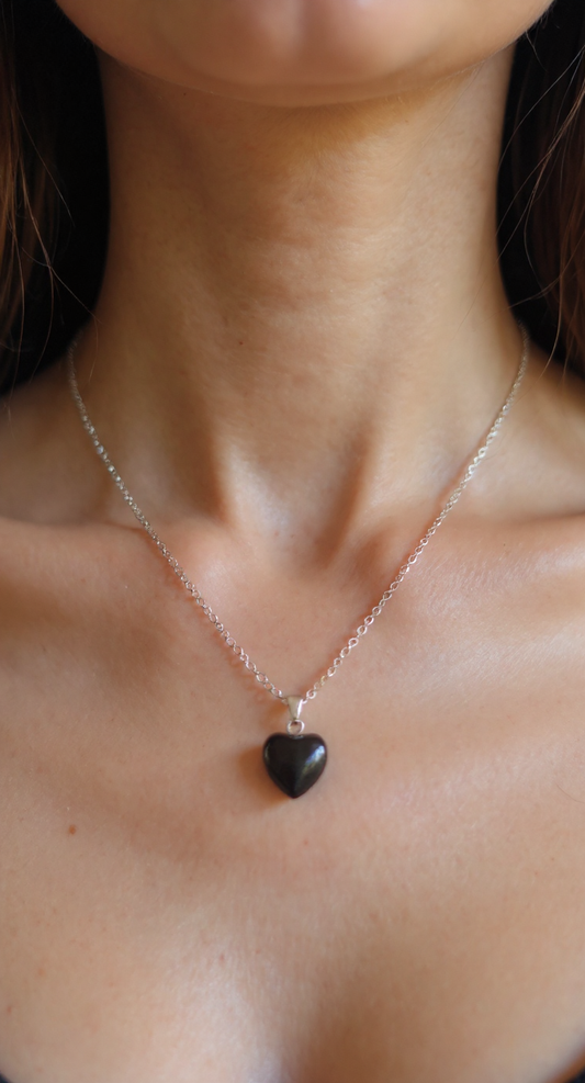🖤 Natural Black Onyx Heart Necklace – Stainless Steel Chain