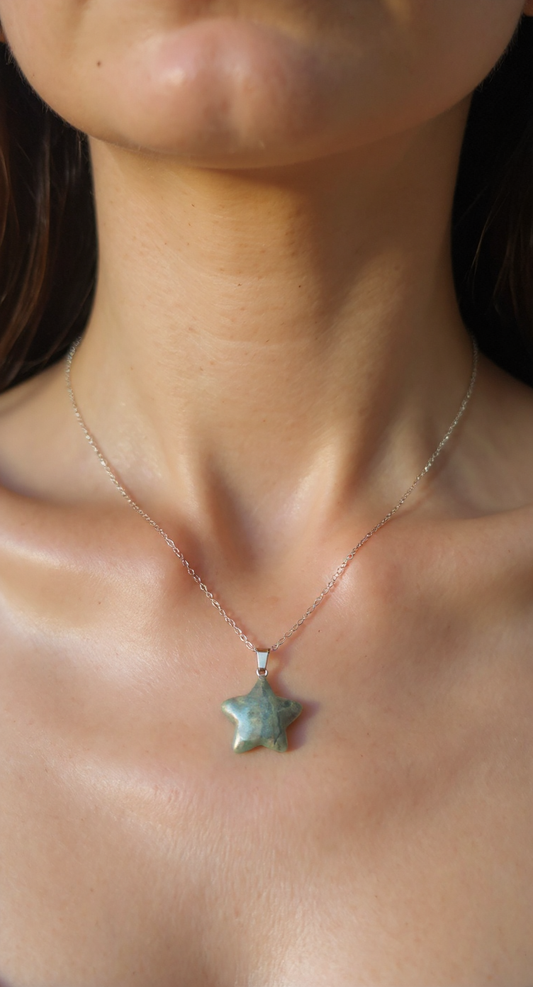 ⭐ Natural Fluorite Star Necklace – Stainless Steel Chain